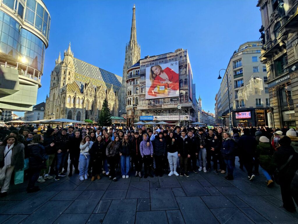 U petak, 28. studenog 2025., učenici redovne i fakultativne nastave njemačkog jezika te 1.c razrednog odjela, u pratnji nastavnika Kristine Kolarić Varga, Dijane Franjo-Čordaš, Svena Tintora i pedagoginje Martine Klasan Lovković, sudjelovali su u jednodnevnom edukativnom izletu u Beč.