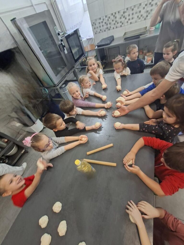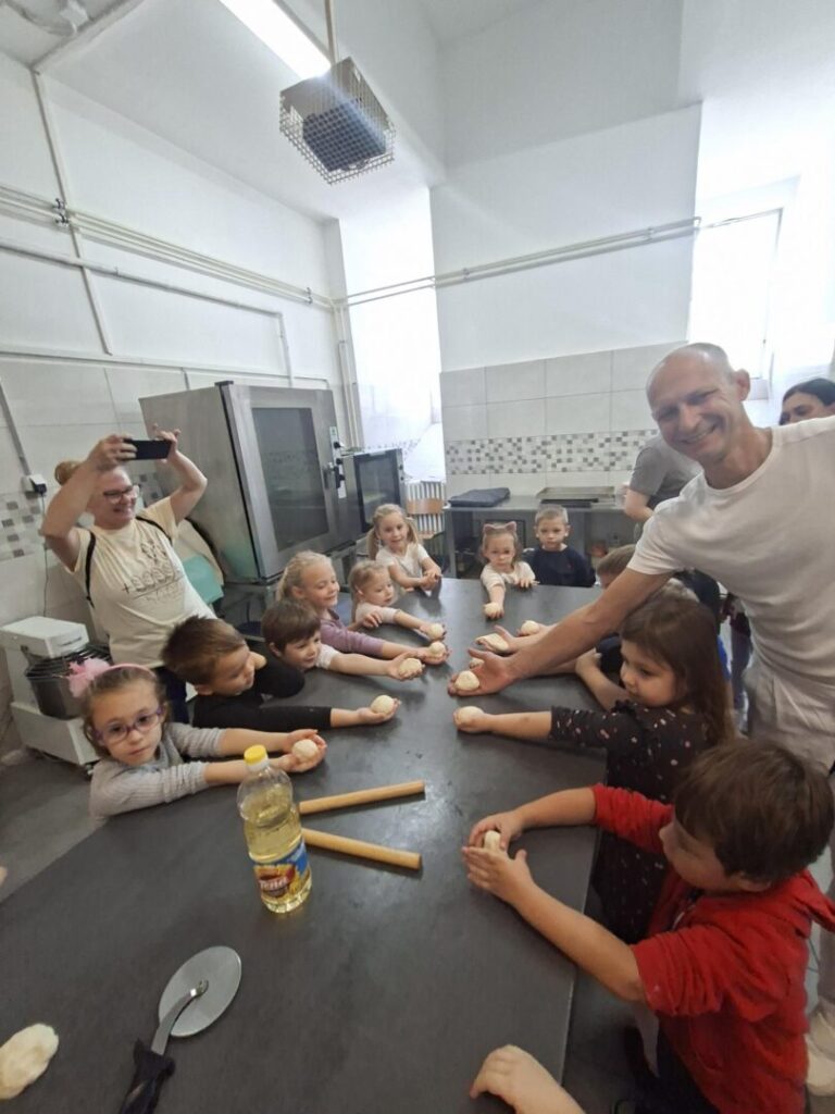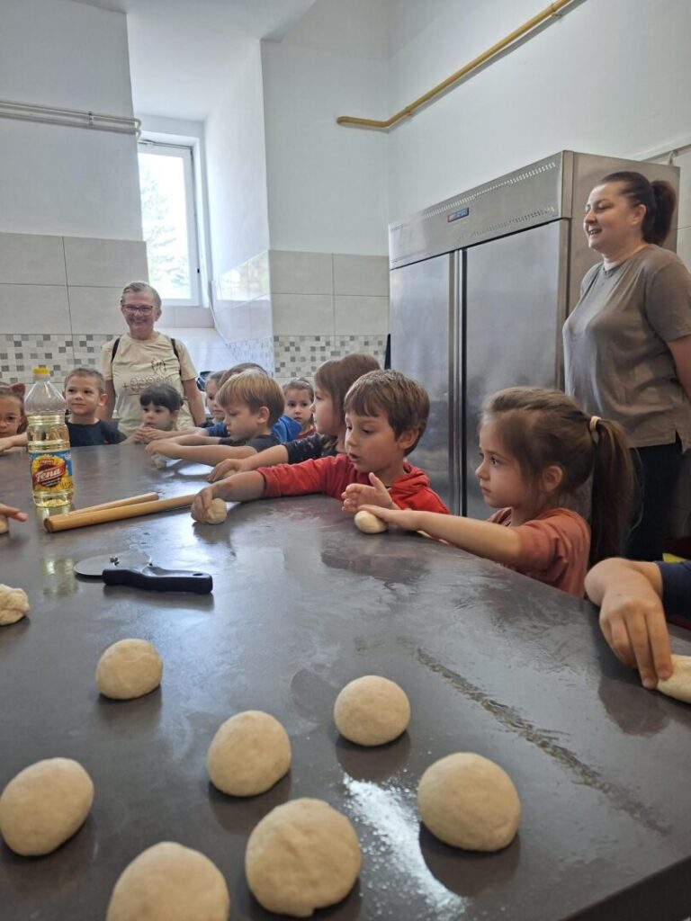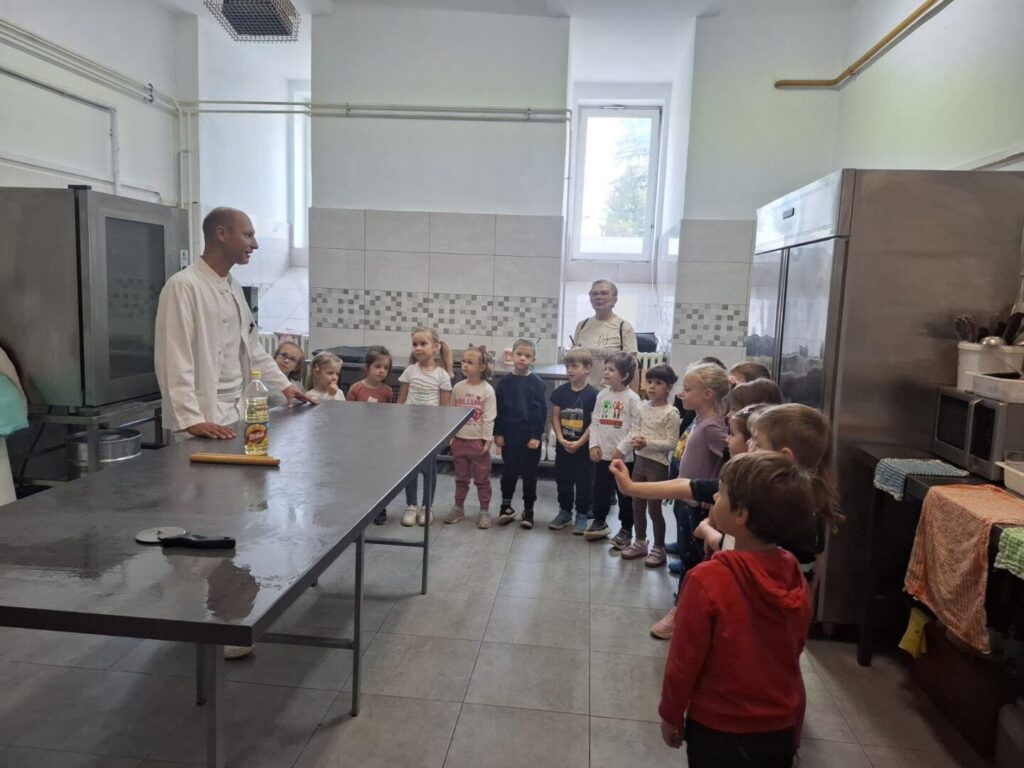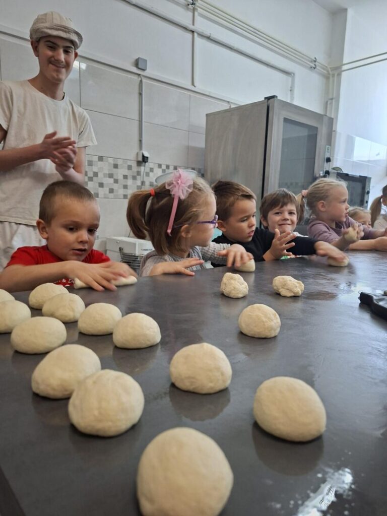 Mali posjetitelji su prvo sudjelovali u pekarskom praktikum pod vodstvom nastavnika struke Zorana Kneževića. Djeca su imala priliku sama izrađivati peciva, koja su na kraju ponijela sa sobom u vrtić.