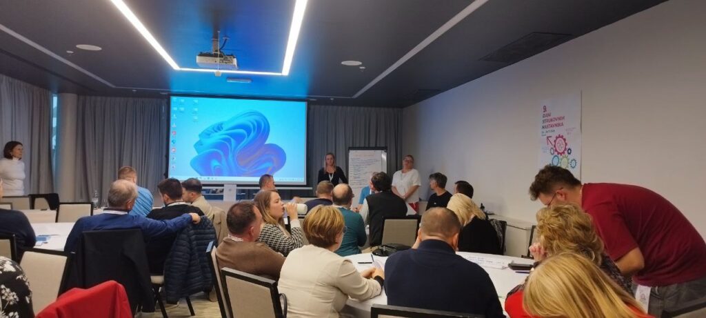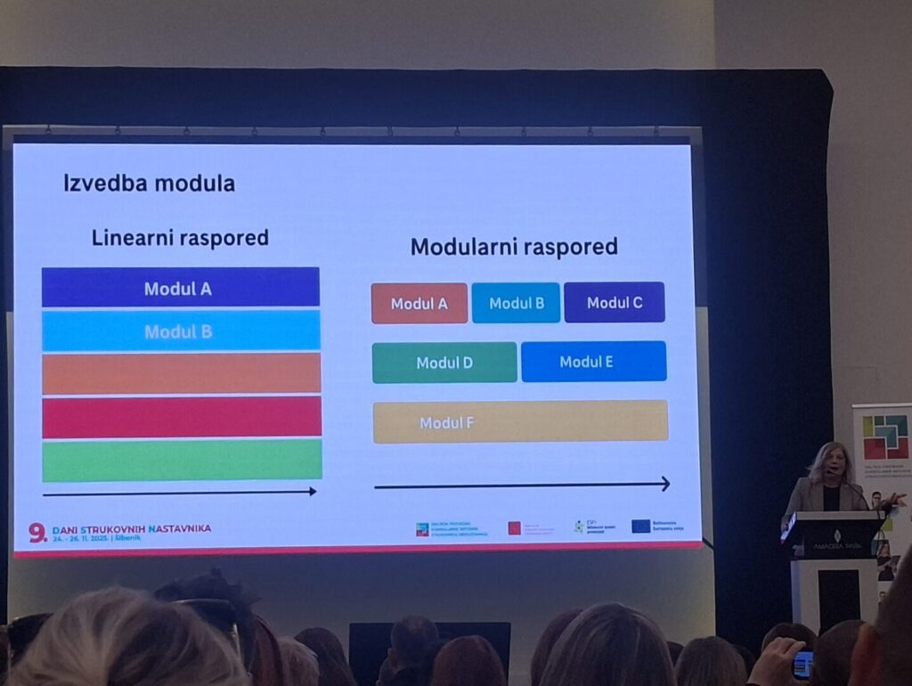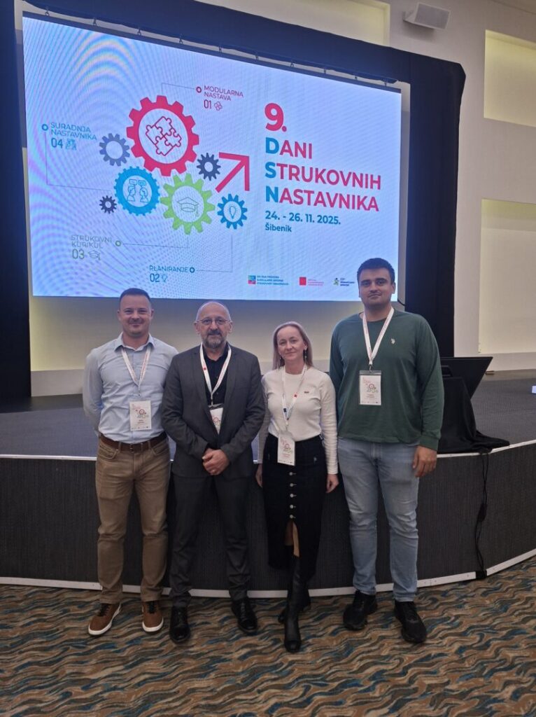 Od 24. do 26. studenog, naši nastavnici Saša Seretin (elektrotehnička struka), Dubravka Jakupec (računalstvo) i Eugen Mikulčić (strojarstvo) sudjelovali su na 9. Danima strukovnih nastavnika u Šibeniku, najvećem nacionalnom skupu posvećenom strukovnom obrazovanju. Događaj je okupio preko 500 nastavnika iz cijele Hrvatske te ponudio bogat program plenarnog predavanja i radionica na temu modularne nastave.