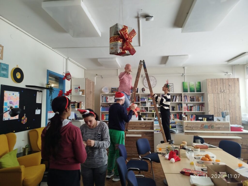 Studeni i prosinac u školskoj knjižnici bili su vrlo raznoliki. Nastavili smo s upoznavanjem knjižnice, učili o pisanju završnog rada, pripremali se za Erasmus mobilnosti, organizirali odlazak na kazališnu predstavu, pripremali se za božićne blagdane i tražili poklone sv. Nikole koji su odlutali iz čizmica. Da pojasnimo…