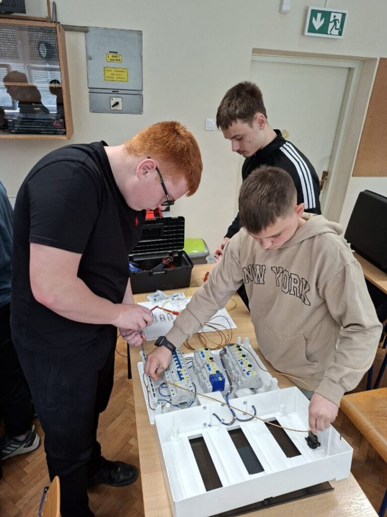 Uz to, demonstriran je i mali razdjelnik za pametne KNX instalacije, čime su učenici dobili uvid u suvremena rješenja u području automatizacije i pametnih sustava u elektroinstalacijama.
